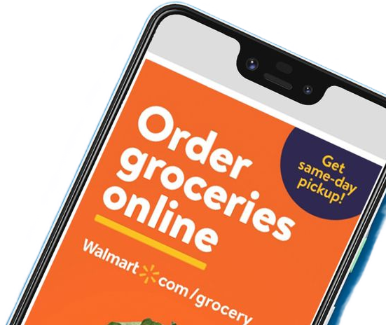 Mobile ads promoted “Order Groceries Online” and same-day pickup